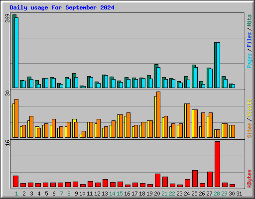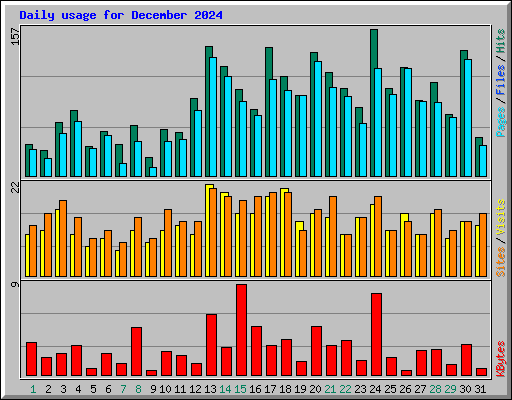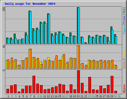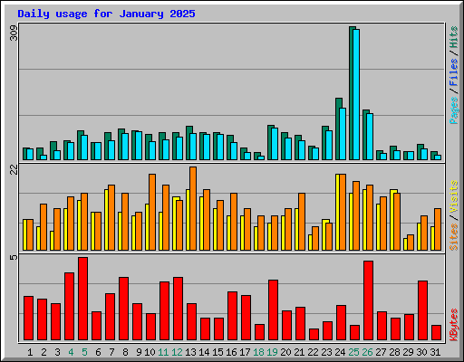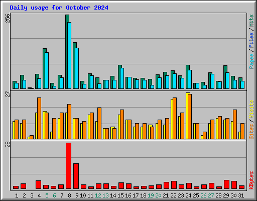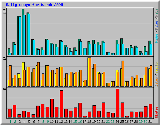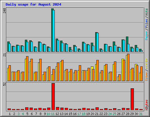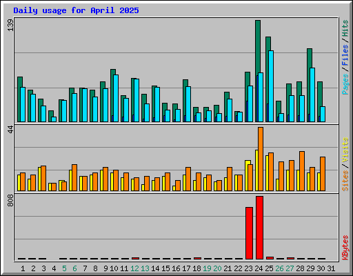 | Day | Hits | Files | Pages | Visits | Sites | KBytes | ||||||